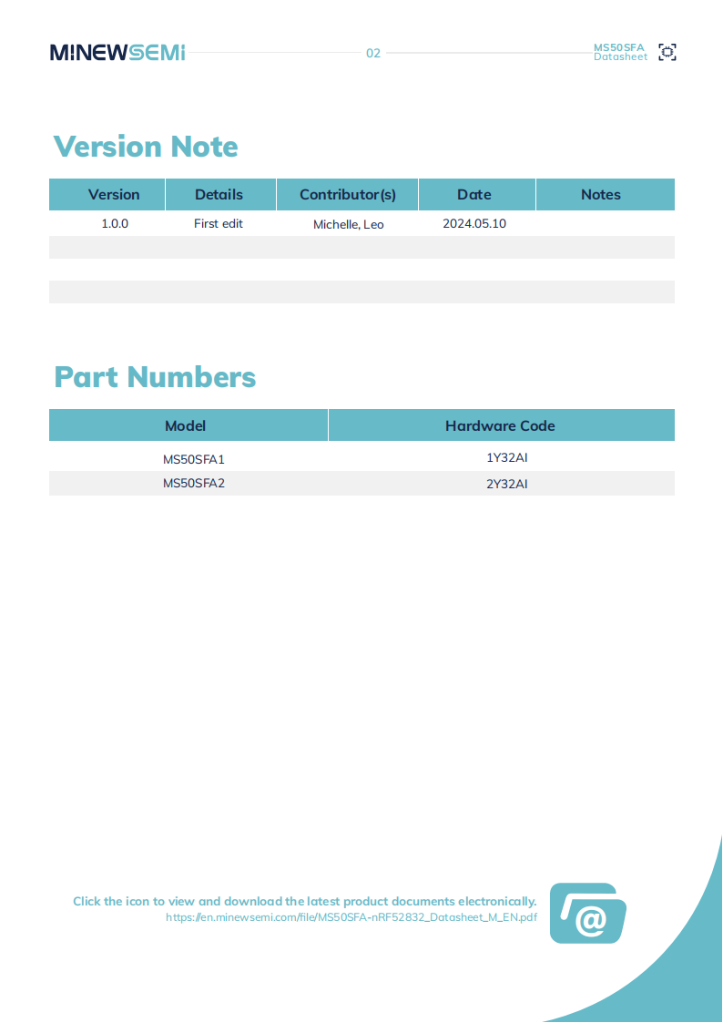 首页    Bluetooth modules    MS50SFA-nRF52832_Datasheet_M_EN
